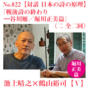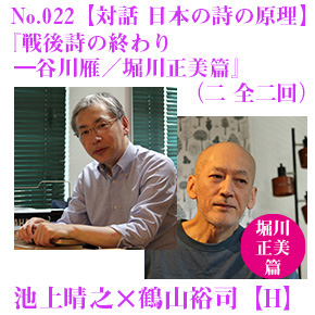 最新記事すべて小説応募要項&選考経緯編集後記文芸批評対話 すべて小説 小説応募要項&選考経緯 応募要項&選考経緯編集後記 編集後記文芸批評 文芸批評対話 対話 金魚屋 BOOK SHOP金魚屋は純文学界のニューウエーブです! 小説、詩書、評論一挙9冊刊行! 金魚屋は11月30日に新刊9冊を一挙刊行しま…鶴山裕司評論集『正岡子規論-日本文学の原像』販売開始!鶴山裕司詩集『おこりんぼうの王様』『聖遠耳』販売開始!松岡里奈著『スーパーヒーローズ』販売開始! 金魚屋新人賞第19回 金魚屋新人賞応募要項(付・第20回新人賞応募要項) 金魚屋新人賞は年2回の公募です。 第19回 締め切り…第18回金魚屋新人賞発表【佳作】松原和音『ピクセル』(小説)第18回 金魚屋新人賞 最終審査候補作品発表(辻原登奨励小説賞・文学金魚奨励賞共通)第17回 金魚屋新人賞発表 【受賞】ケニー敏江『四角い海』/酒井聡『新人賞!(「タイムスタンプ」より改題)』『貧乏のたまもの』/紫雲『無差別の法則』 小説遠藤徹 連載小説『ビューチーコンテストオ!』(第03回)【V】学園祭のビューティーコンテストがフェミニスト女子学生たちによ…遠藤徹 連載小説『ビューチーコンテストオ!』(第03回)【H】寅間心閑 連載小説『オトコは遅々として』(第45回)【V】寅間心閑 連載小説『オトコは遅々として』(第45回)【H】 対話対話『エンニスの誘惑―再構築・バベルの塔』小原眞紀子×エンニス(対話型AI Grok[グロック])(第13回)【V】21世紀の文学・芸術・社会・政治経済…わたしたちの精神は何処…対話『エンニスの誘惑―再構築・バベルの塔』小原眞紀子×エンニス(対話型AI Grok[グロック])(第13回)【H】No.022【対話 日本の詩の原理】『戦後詩の終わり―谷川雁/堀川正美篇』(二 全二回)池上晴之×鶴山裕司【V】No.022【対話 日本の詩の原理】『戦後詩の終わり―谷川雁/堀川正美篇』(二 全二回)池上晴之×鶴山裕司【H】 歌誌No.123 鶴山裕司 歌誌時評―特集「平明と奥行き」/花山多佳子『三本のやまぼふし』(角川短歌 2025年06月号) 今号の特集は軽めの「平明と奥行き」。漠然とし…No.122 鶴山裕司 歌誌時評―「没後一〇〇年 山中智恵子」(角川短歌 2025年月05月号 下篇)No.121 鶴山裕司 歌誌時評―「没後二〇年 塚本邦雄」(角川短歌 2025年月05月号 上篇)No.034 鶴山裕司 歌誌時評 「没後25年、文庫化「いま永井陽子を読む」」(短歌研究 2025年3+4月号) 句誌No.222 鶴山裕司 句誌時評 特集「おらが里の季語~鄕土を詠む」(「月刊俳句界」2025年05月号) 五月号では特集「おらが里の季語~鄕土を詠む」…No.221 鶴山裕司 句誌時評 涼野海音「未刊の絵」/堀切克洋「一獣」/依田善朗句集『鷹渡る』(「月刊俳句界」2025年04月号)No.220 鶴山裕司 句誌時評 川名大「2024年評論展望」(「月刊俳句界」2025年03月号)No.219 鶴山裕司 句誌時評-「特集 わび・さびに学ぶこと」(「角川俳句」2025年05月号) アート鶴山裕司 連載エッセイ『言葉と骨董』『No.085 たぶん初期隅田川焼でしょうね。』隅田川焼高麗刷毛目平茶碗 口径一五・一×高五・九×高台径五・…鶴山裕司 連載エッセイ『言葉と骨董』『No.084 柏木貨一郎旧蔵『法隆寺金堂天蓋瓔珞玉』』鶴山裕司 連載エッセイ『言葉と骨董』『蓮月尼の瓢箪徳利』(第83回)鶴山裕司 美術展時評 No.144『古代DNA―日本人のきた道―』展(下編) 金魚詩壇鶴山裕司 連作詩篇『聖遠耳 日日新』No.021『Wuthering Heights』【V】 横書きでもお読みい…鶴山裕司 連作詩篇『聖遠耳 日日新』No.021『Wuthering Heights』【H】鶴山裕司 安井浩司研究 No.034 安井浩司『創作ノート 1968-73』(三)寅間心閑の肴的音楽評『No.113 リサイクル』 HOME was last modified: 4月 27th, 2024 by gold-fish-press