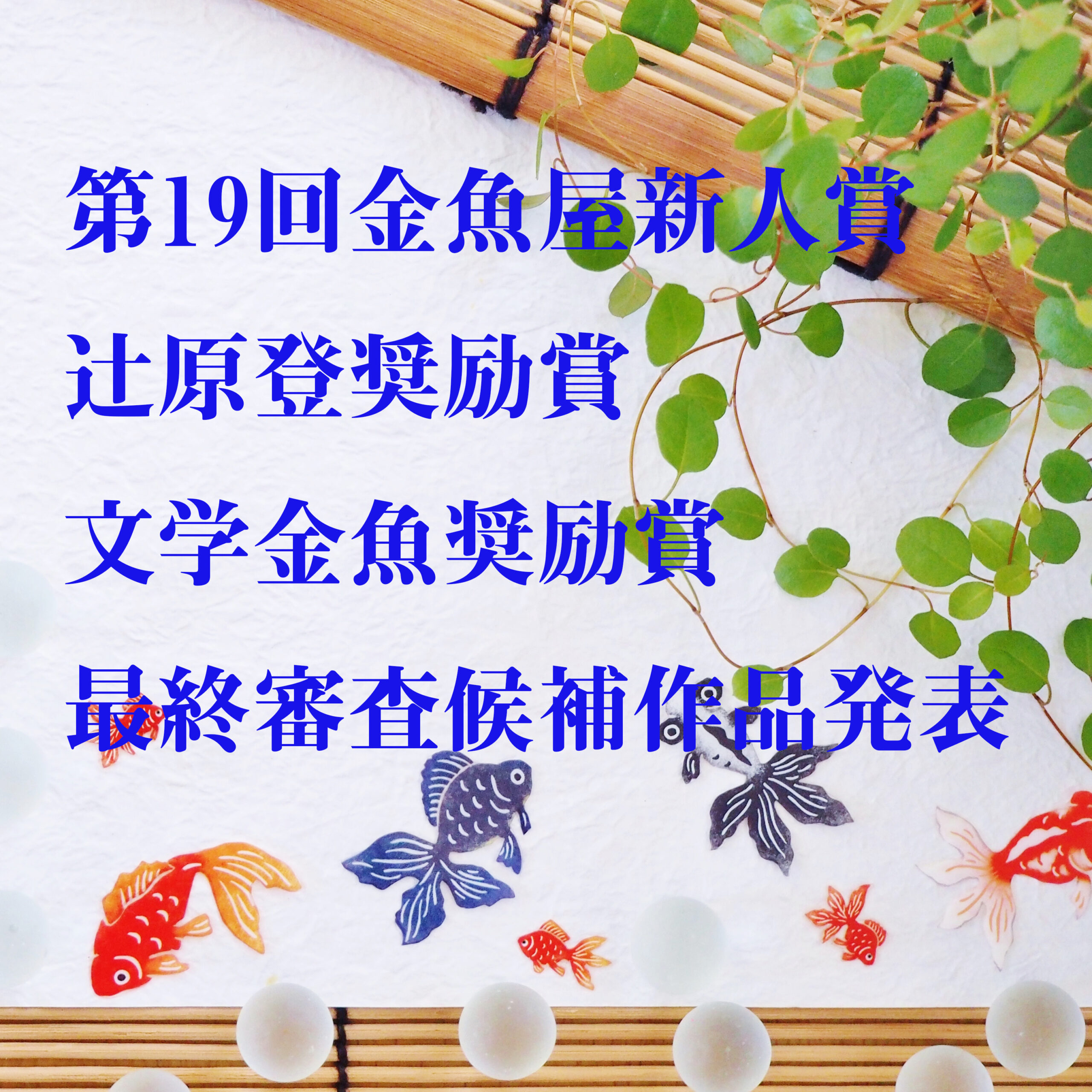 第20回 金魚屋新人賞応募要項(付・第21回新人賞応募要項) 金魚屋新人賞は年2回の公募です。 第20回 締め切り…