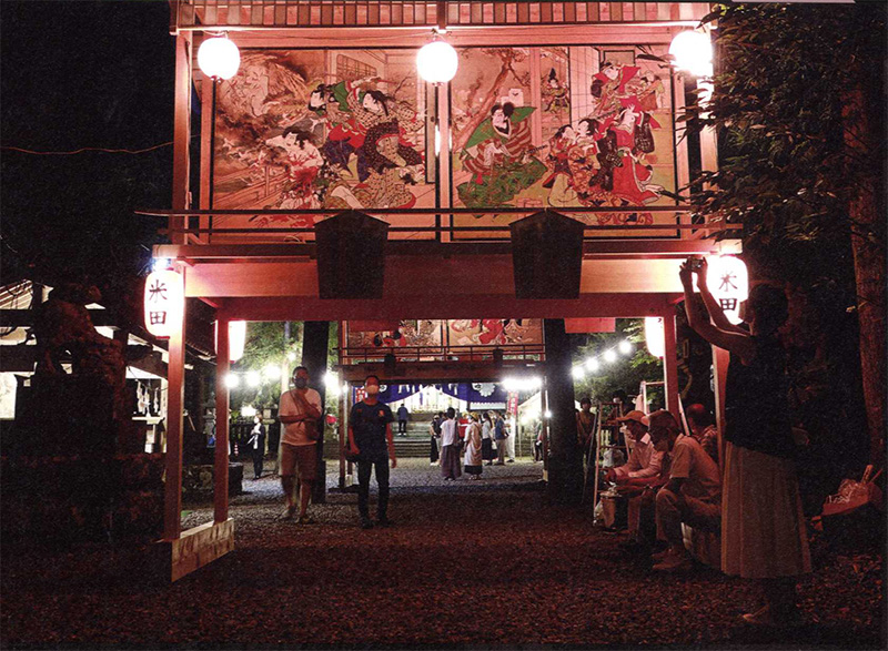 南国土佐(高知県)の沿岸部では今も夏祭りに芝居絵屏風を飾る独特な祭礼が行われている。歌舞伎の名場面などを描いた浮世絵屏風である。神社の参道や境内に巨大な台(地域によって台提灯、絵馬台、花台など呼び名が異なる)を作り、そこに何点もの屏風を嵌め込んで飾る。台といっても武骨な木枠ではなく繊細かつ豪華な神棚のような作りだ。参拝者が下を潜ることができる大きな門のような台もある。それ以外にも芝居絵屏風を所蔵している氏子などが家の前に屏風を飾ったりする。