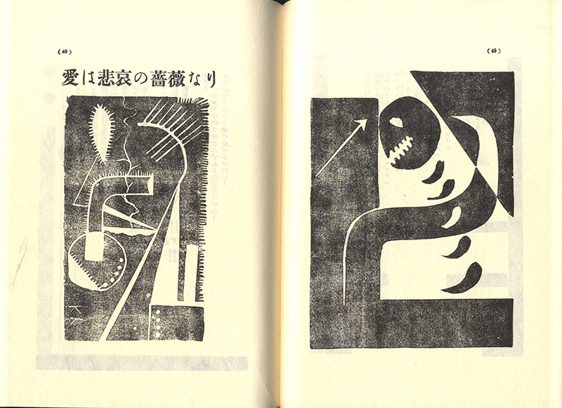『死刑宣告』には見開き程度の八十三篇の短詩が収録されていますがそれぞれの詩に違う装幀が施されている。最近再評価が進んでいる演出家・舞台芸術家の村山知義の「マヴォ」グループが装幀に協力しています。「マヴォ」は村山と尾形亀之助、柳瀬正夢らが結成した「未来派美術協会」の機関誌でした。こういった前衛グループはすぐ分裂・解散してしまう。革命は一度限りで二回繰り返せないからね。「マヴォ」も三年ほどで実質的に解体しますが『死刑宣告』はアナキストと未来派の共作詩集です。