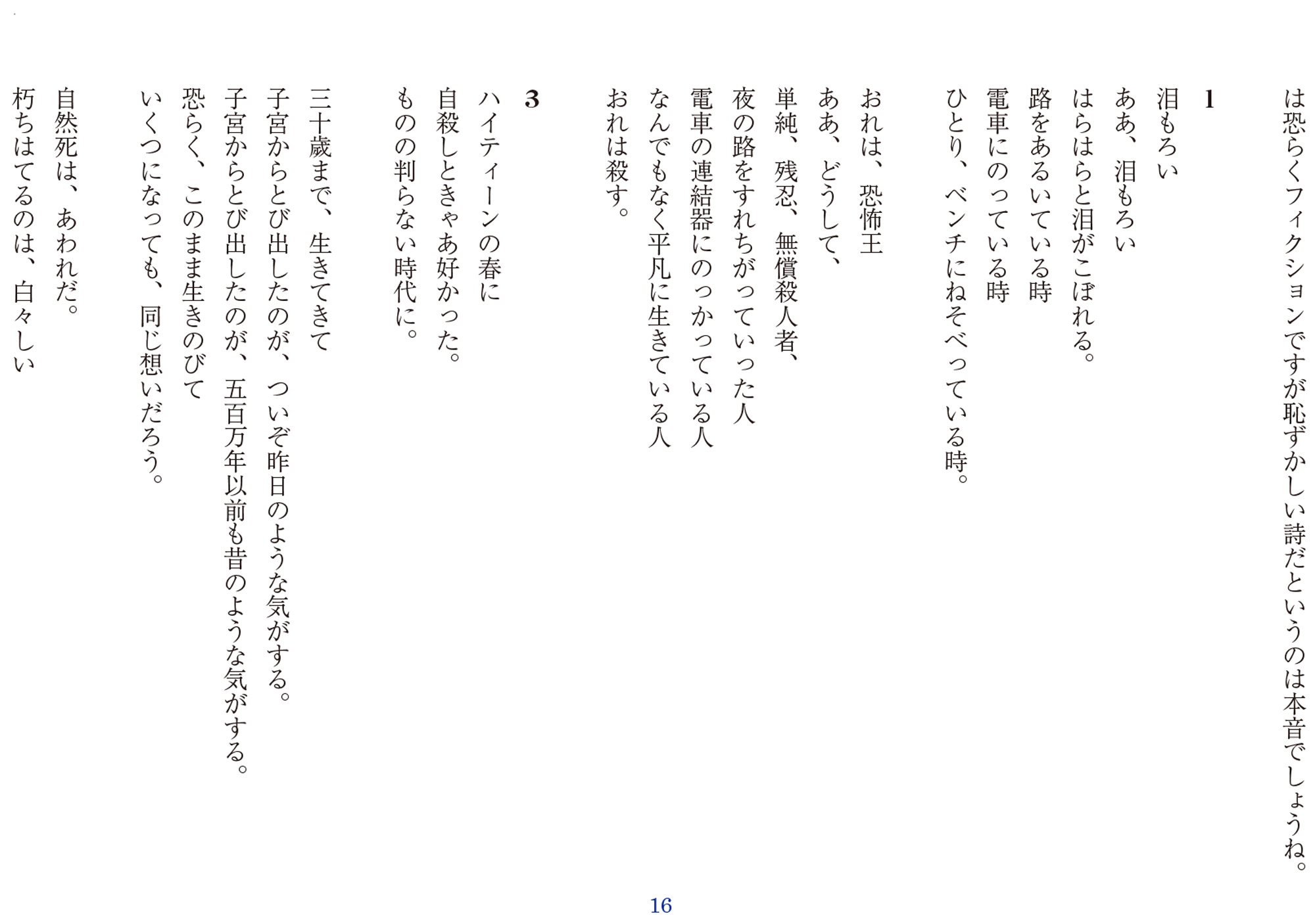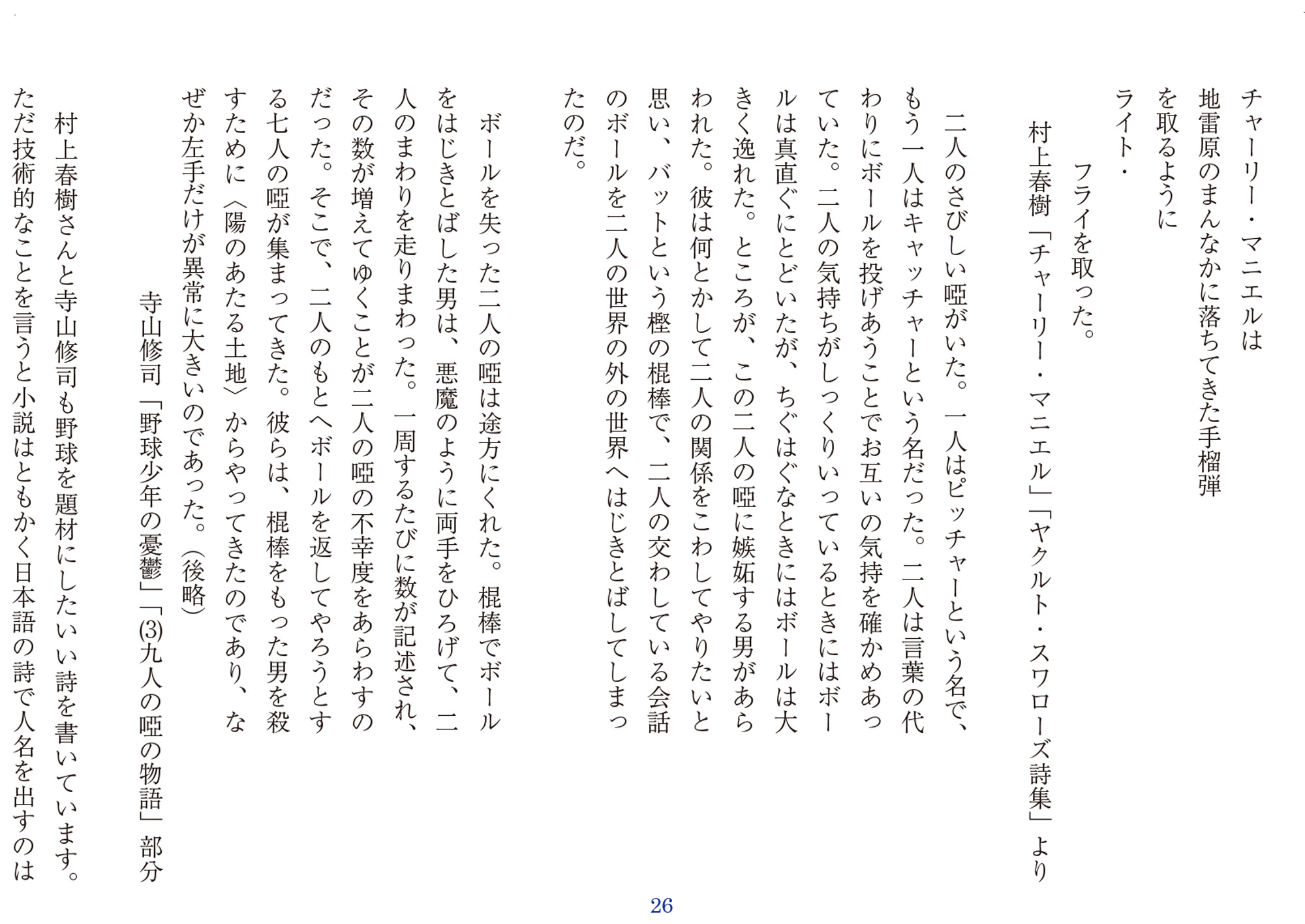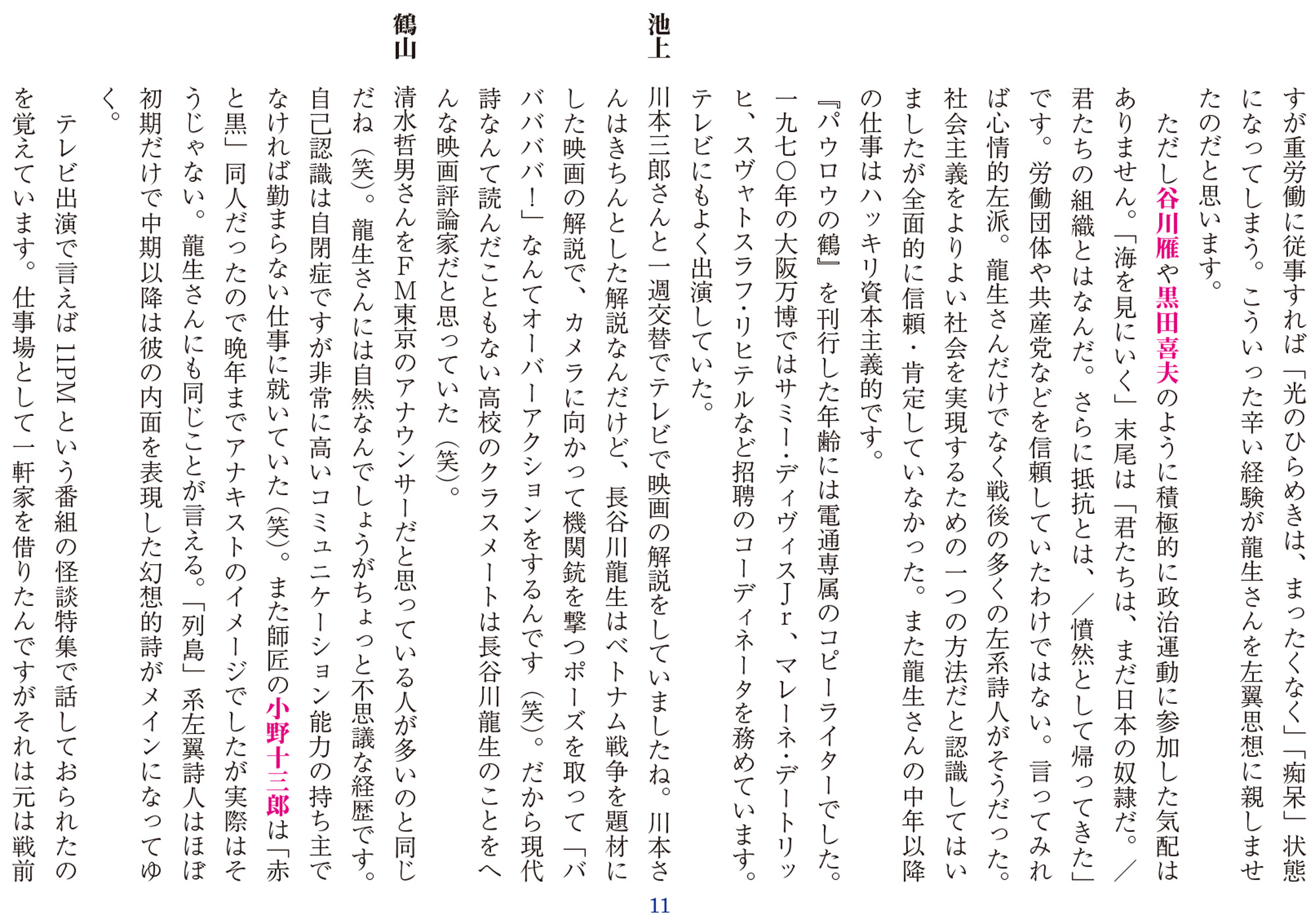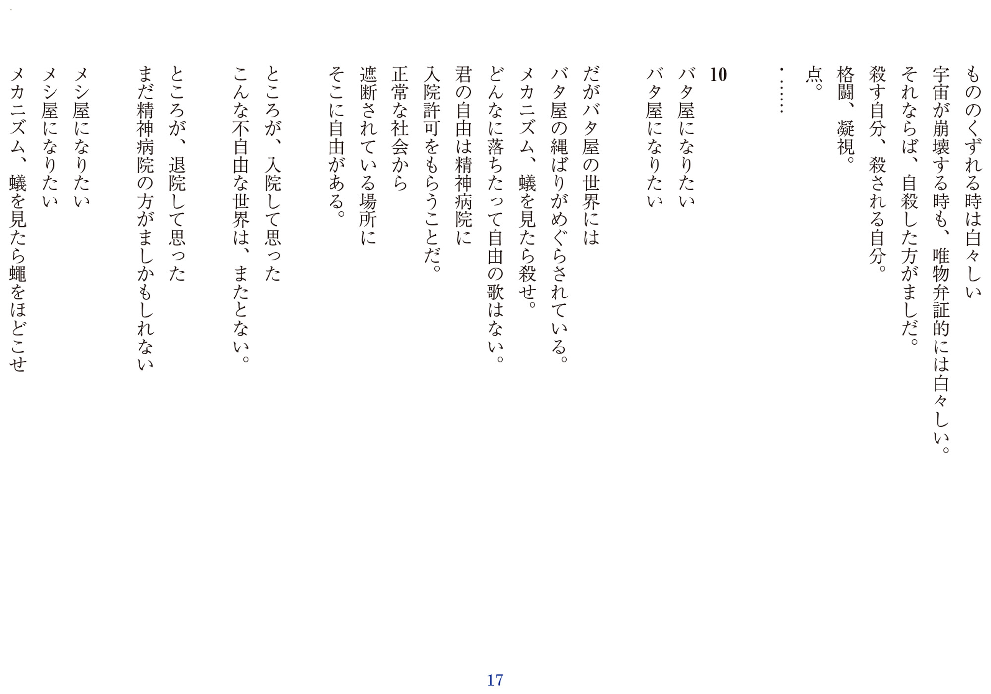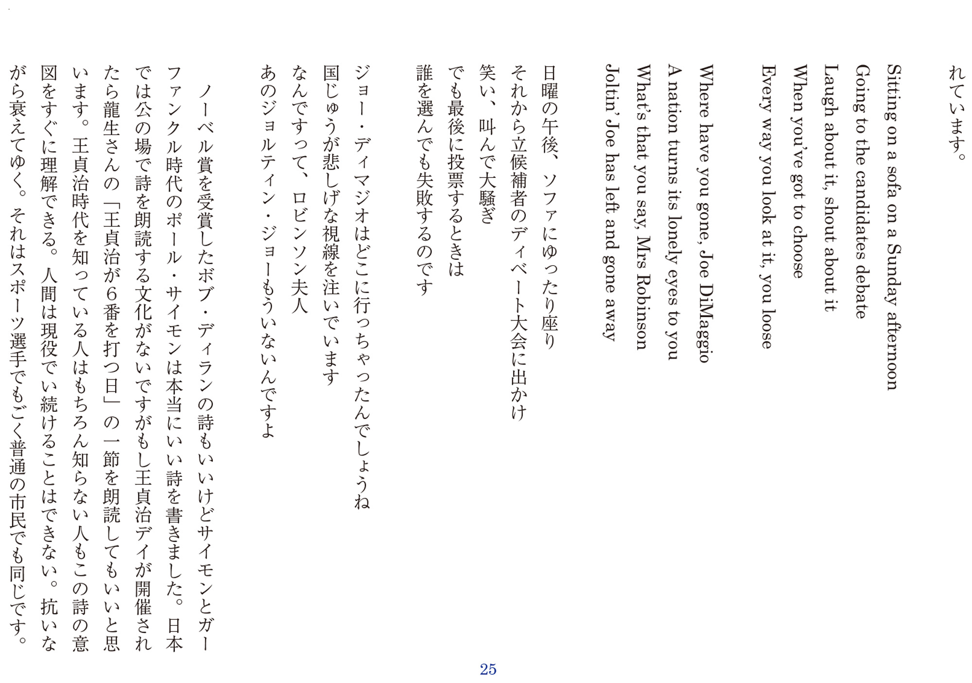 自由詩は現代詩以降の新たな詩のヴィジョンを見出せずに苦しんでいる。その大きな理由の一つは20世紀詩の2大潮流である戦後詩、現代詩の総括が十全に行われなかったことにある。21世紀自由詩の確実な基盤作りのために、池上晴之と鶴山裕司が自由詩という枠にとらわれず、詩表現の大局から一方の極である戦後詩を詩人ごとに詳細に読み解く。 by 金魚屋編集部 横書きでもお読みいただけます。左のボタンをクリックしてファイルを表示させてください。 *『対話 日本の詩の原理』は毎月01か02日にアップされます。 ■『ザ・バンド 来たるべきロック』池上晴之著 ■ ■鶴山裕司さんのコンテンツ■ 連作詩『聖遠耳 日日新』 連載詩論『現代詩人論』 連載『安井浩司研究』 連載評論『高柳重信とその時代』 連載エッセイ『言葉と骨董』 連載時評『美術展時評』 句誌時評 歌誌時評 ■ 金魚屋 BOOK SHOP ■ ■ 金魚屋 BOOK Café ■ No.024【対話 日本の詩の原理】『〝戦後の詩〟のアベレージ―小野十三郎/長谷川龍生/安東次男篇』(二 全三回)池上晴之×鶴山裕司【V】 was last modified: 11月 30th, 2025 by gold-fish-press 関連記事 No.024【... 対話『エンニス... 対話『エンニス... No.023【... No.023【... 対話『エンニス... 対話『エンニス... No.022【... No.022【... 対話『エンニス...