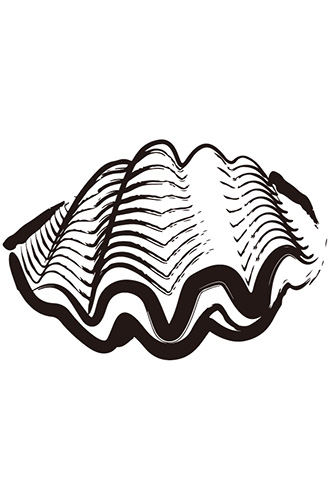 波打つような形状から、貝殻はおそらくシャコガイと思われた。大きさはおよそ二メートルほどもあっただろうか。貝殻はまっ白で、中にいる老人の褐色の肌ときれいな対照をなしていた。身長百六十センチほどだったので、縦に立った貝殻の割れ目の、真ん中あたりからこっちを覗いている感じだった。老人は白いひげをもじゃっとはやしており、白髪ももじゃっとなっていた。