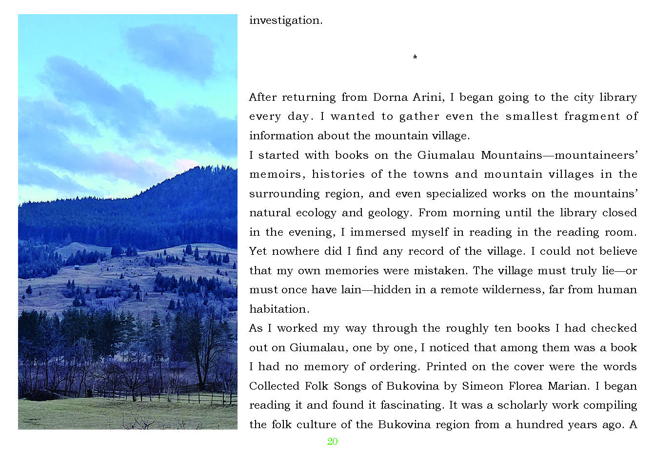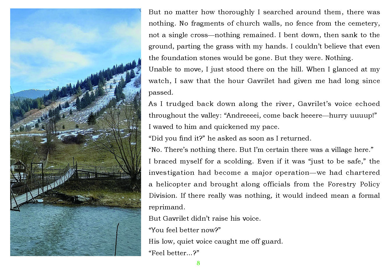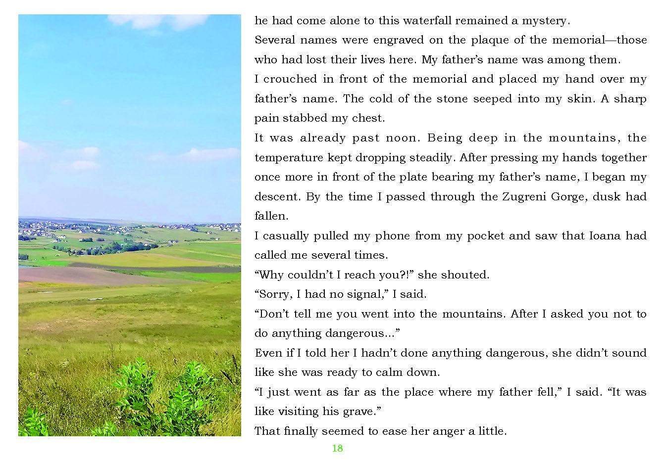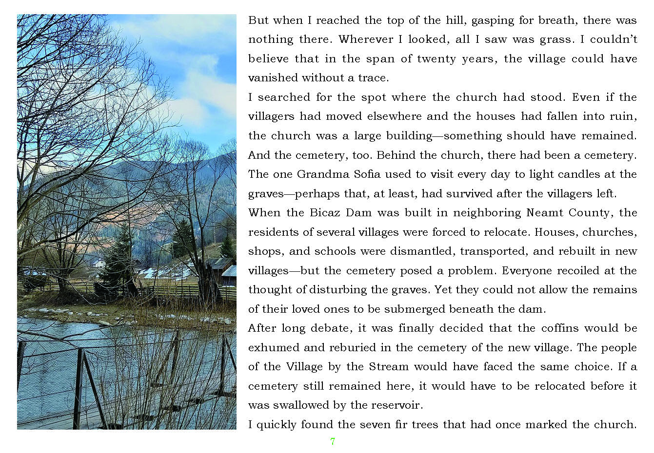 It has been decided to build a dam deep in the Giumalau Mountains in Romania. If the dam is built, a village deep in the mountains will be submerged. There must be a village there that is not on any map and is unknown to the locals. Andrei, who works for the Suceava Prefectural Office, sets out alone to investigate the existence of the village, which he had visited only once 20 years ago before construction of the dam began…. A fantasy novel by Ramona Tsaraneu, a Romanian Noh researcher and translator.