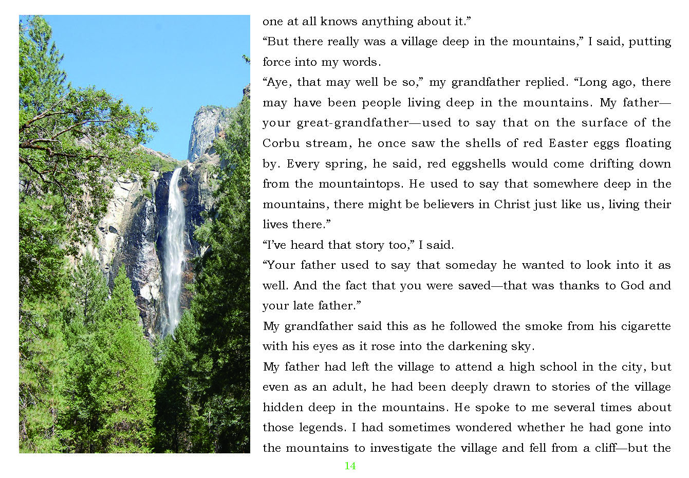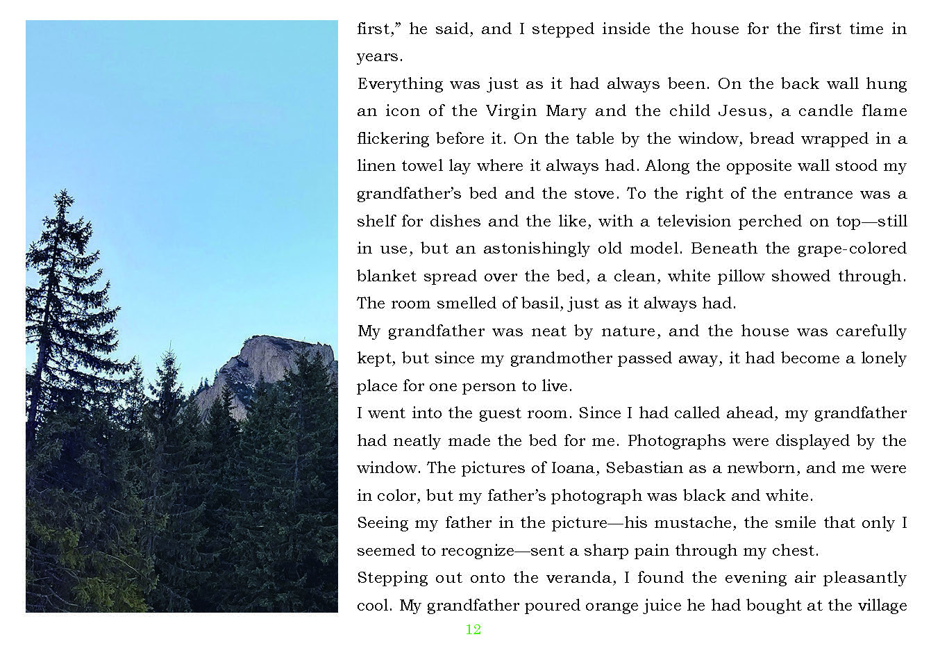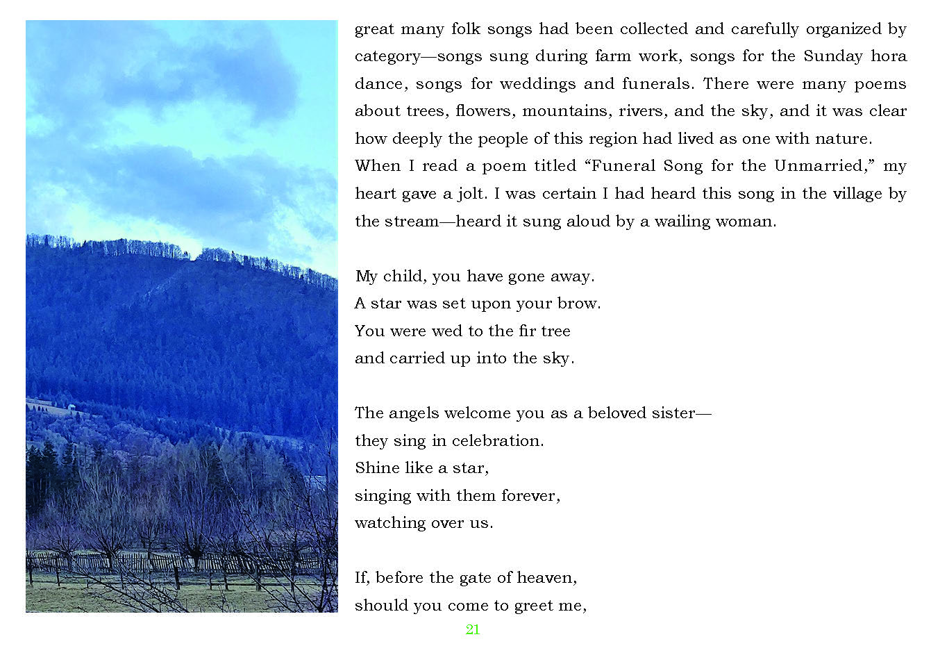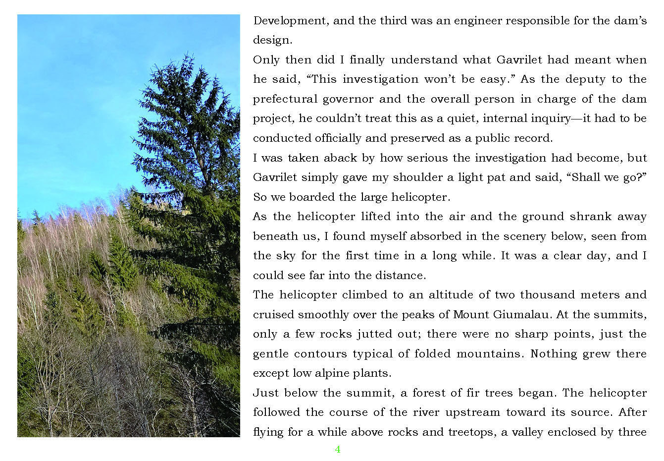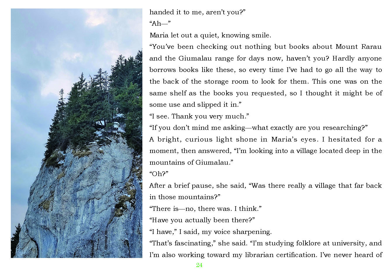 It has been decided to build a dam deep in the Giumalau Mountains in Romania. If the dam is built, a village deep in the mountains will be submerged. There must be a village there that is not on any map and is unknown to the locals. Andrei, who works for the Suceava Prefectural Office, sets out alone to investigate the existence of the village, which he had visited only once 20 years ago before construction of the dam began…. A fantasy novel by Ramona Tsaraneu, a Romanian Noh researcher and translator.
