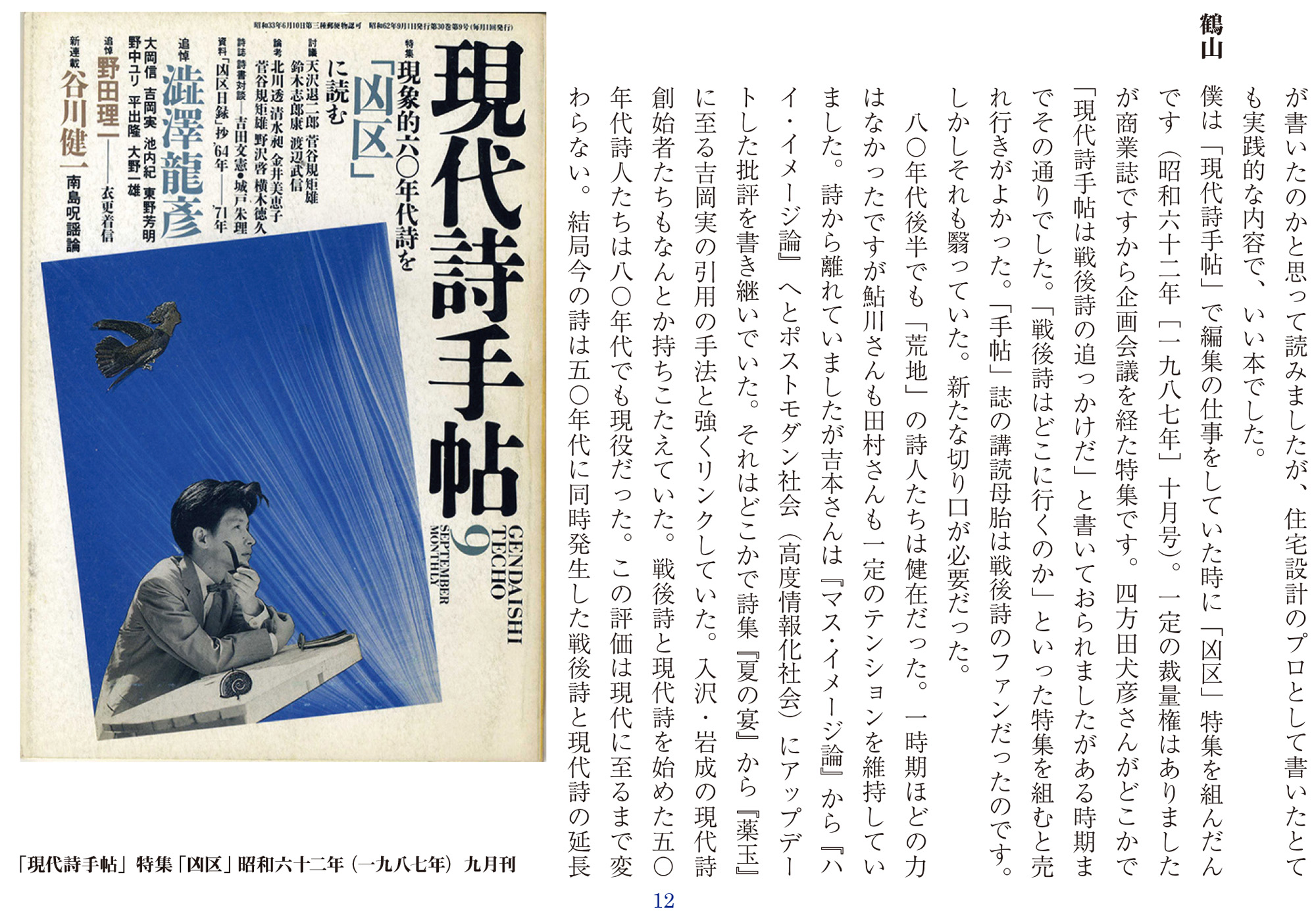 No.026【対話 日本の詩の原理】『「凶区」と鈴木志郎康の時代―渡辺武信/天沢退二郎/菅谷規矩雄』(一 全二回)池上晴之×鶴山裕司【V】