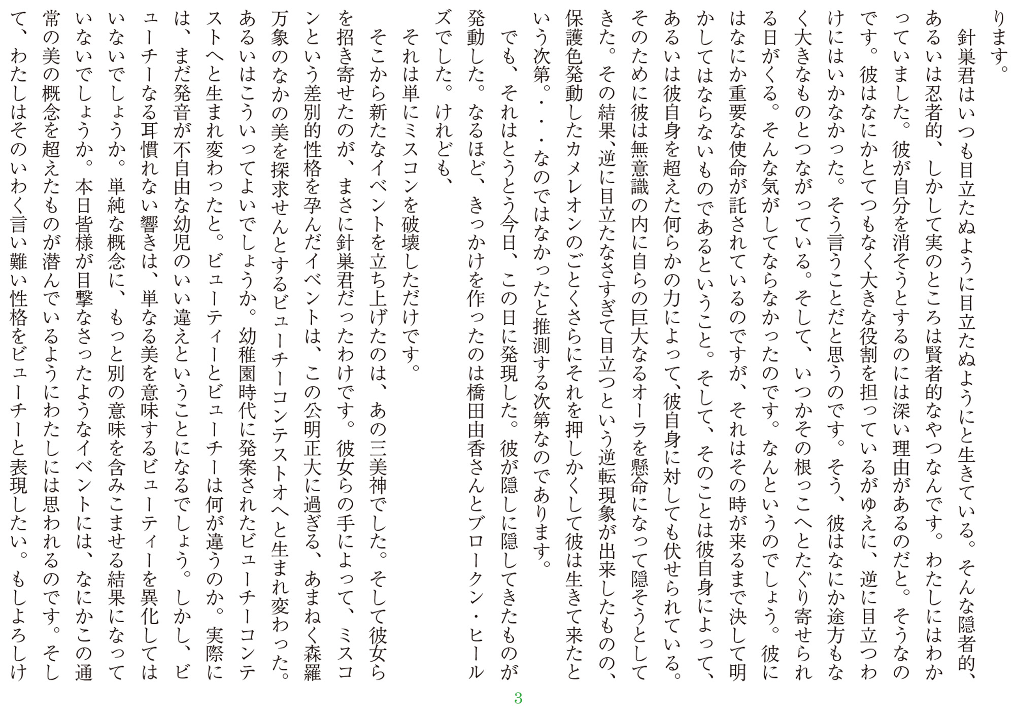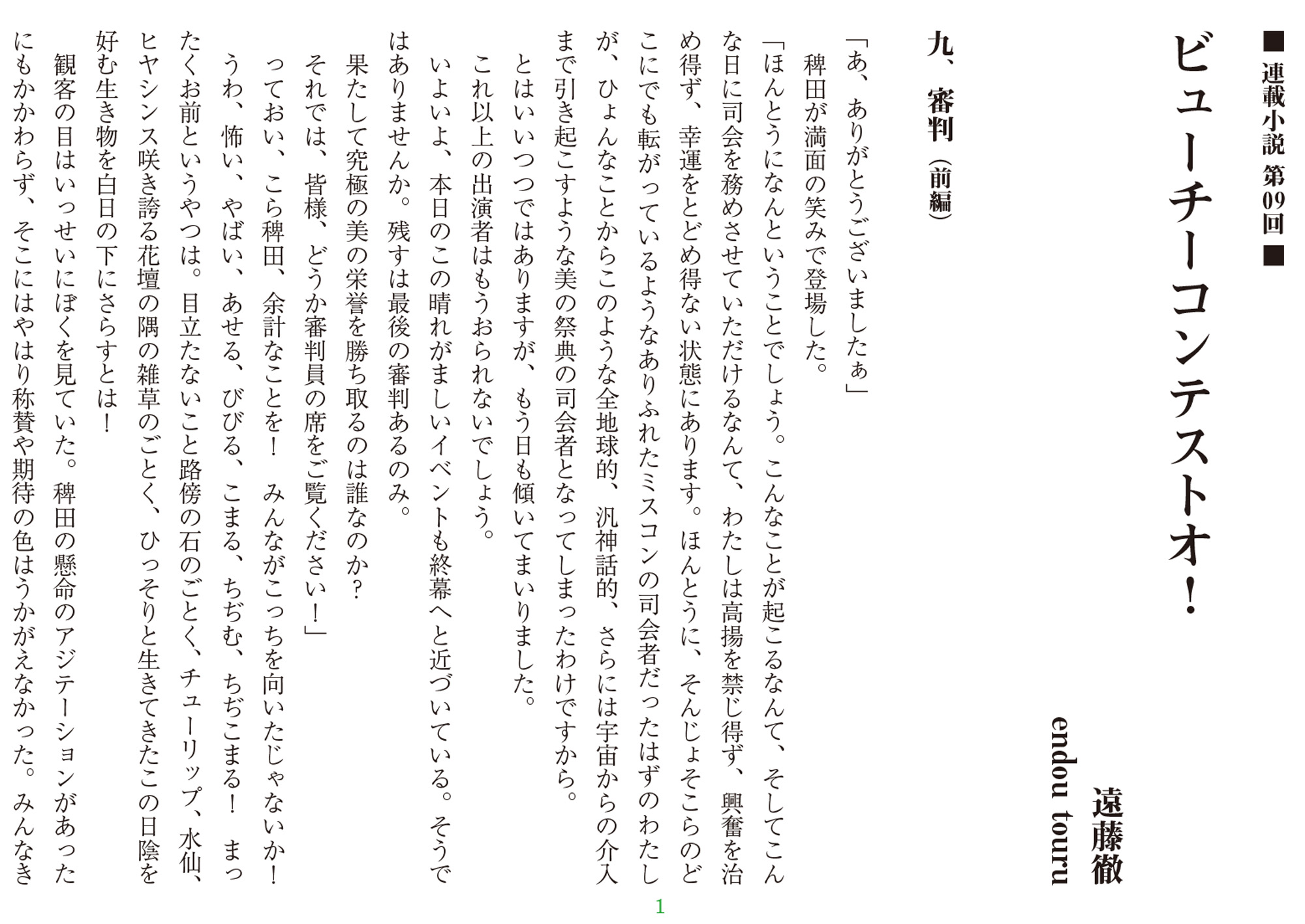 遠藤徹 連載小説『ビューチーコンテストオ!』(第09回)【V】