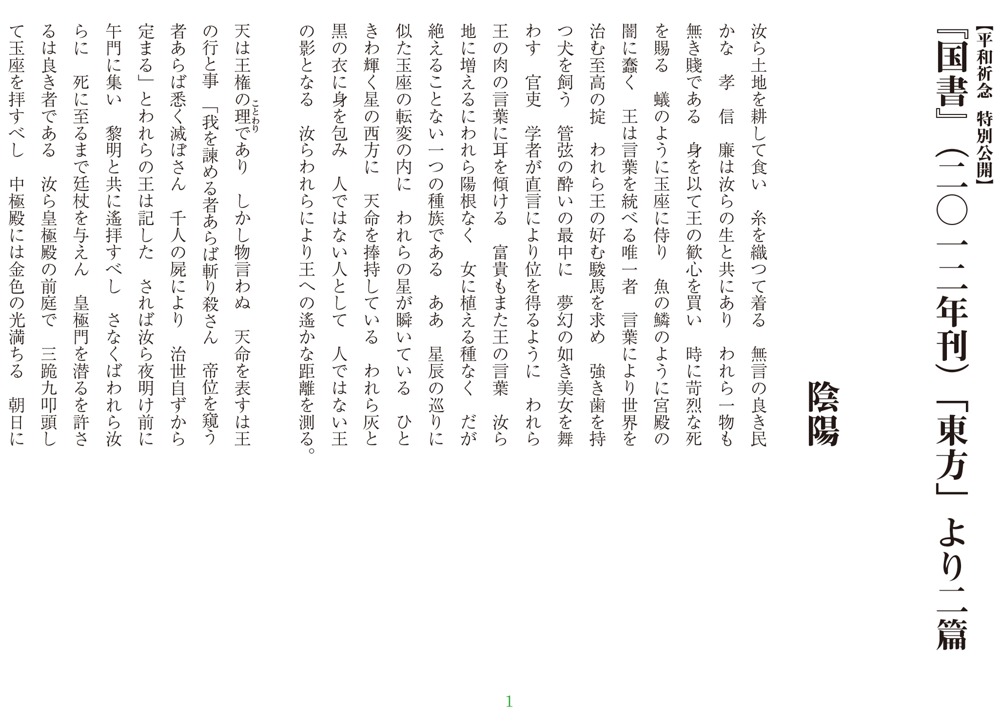 【平和記念 特別公開】鶴山裕司詩集『国書』「東方篇」より二篇(二〇一二年刊)