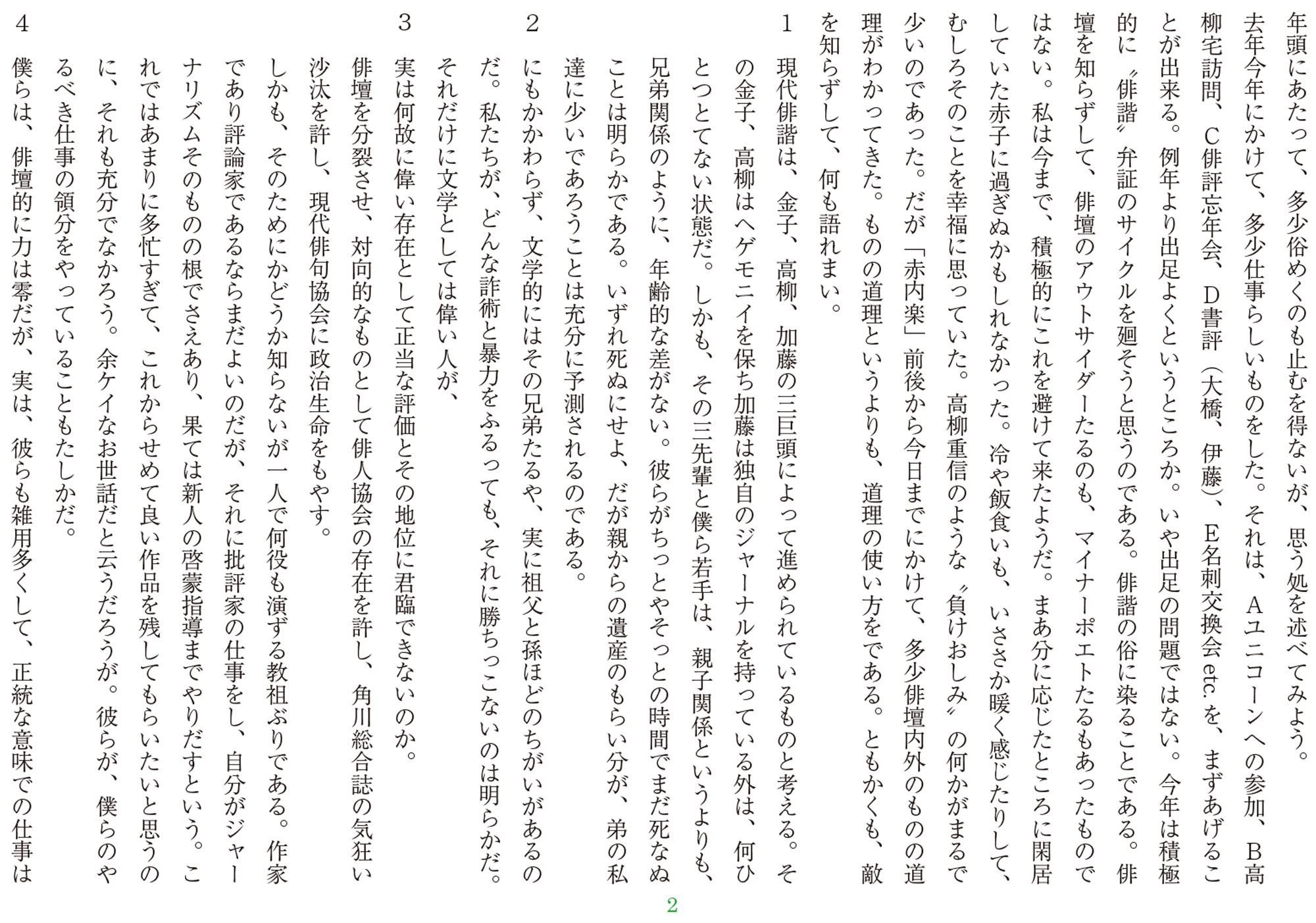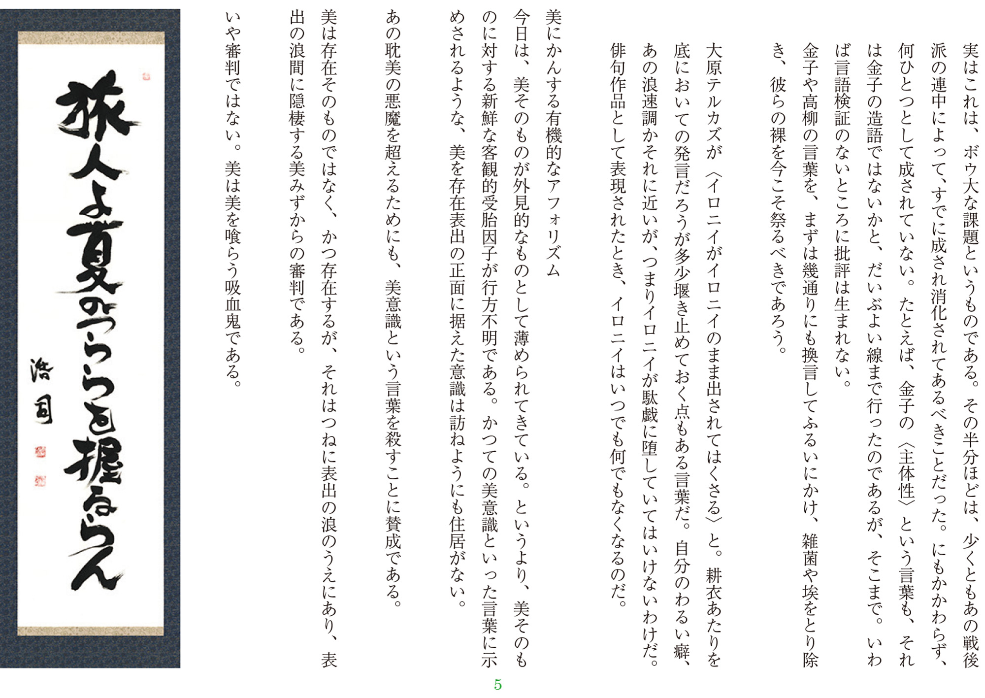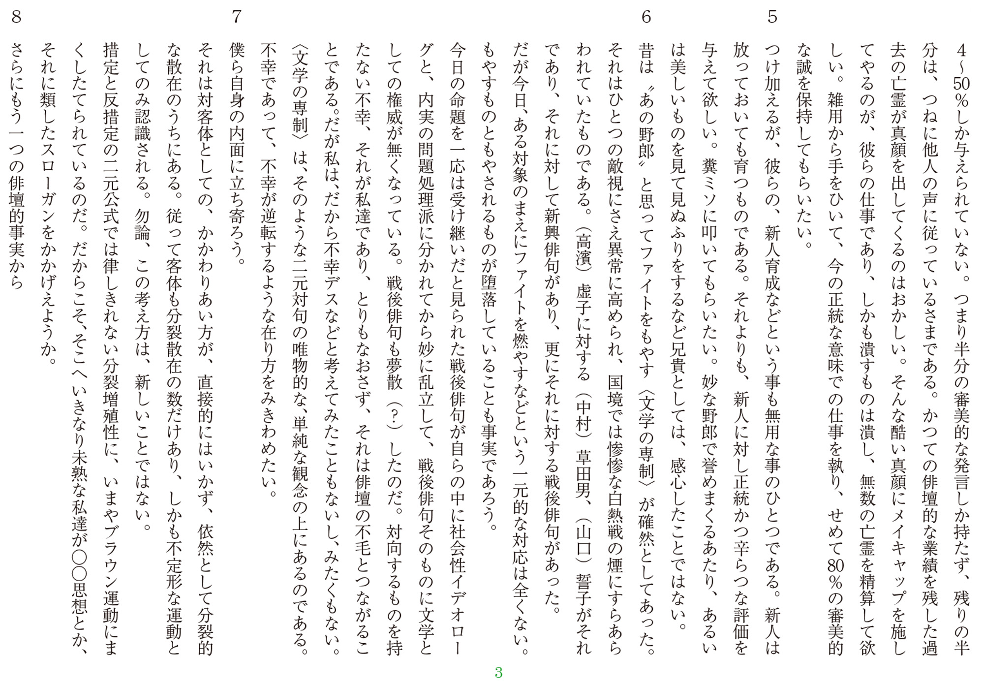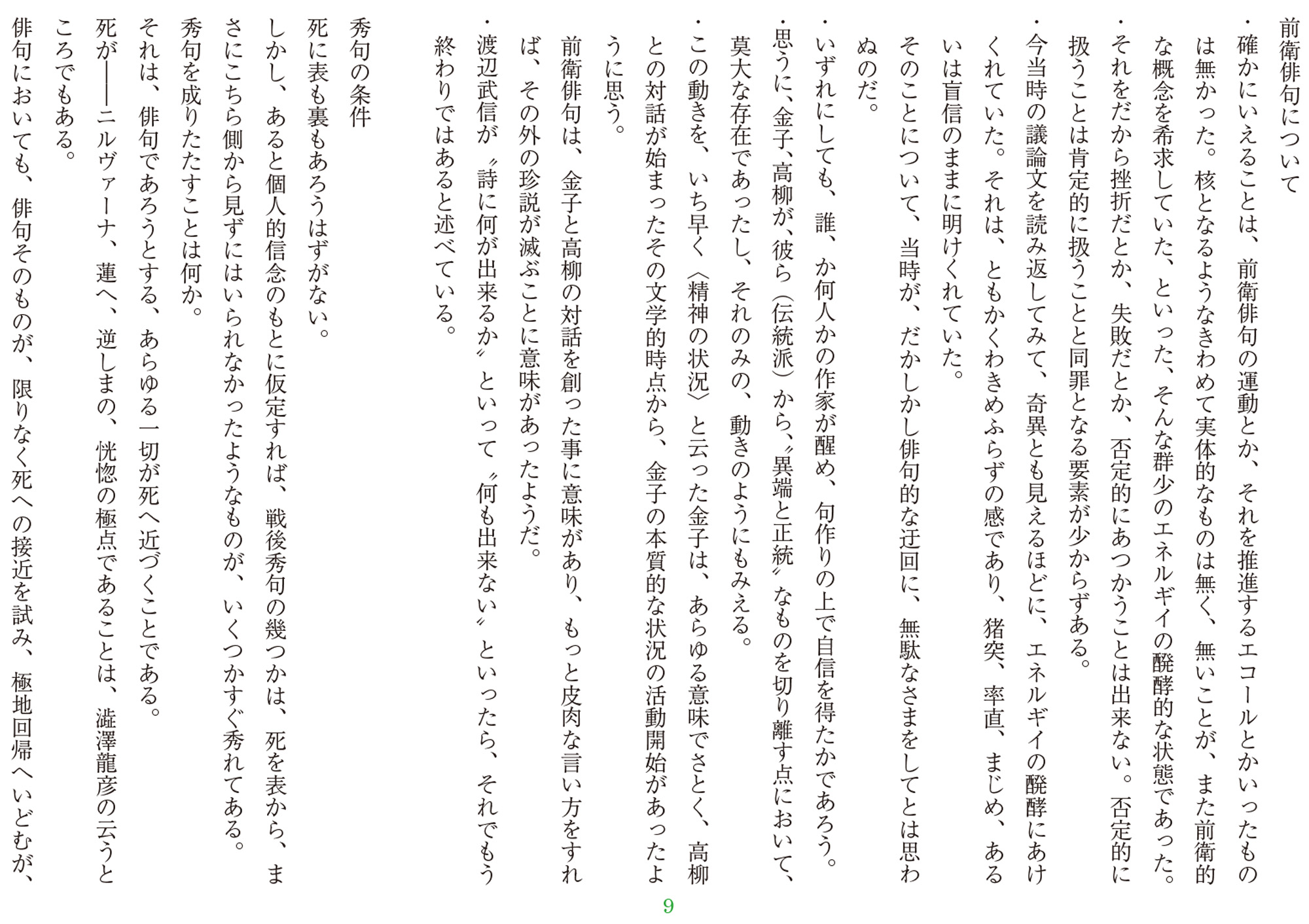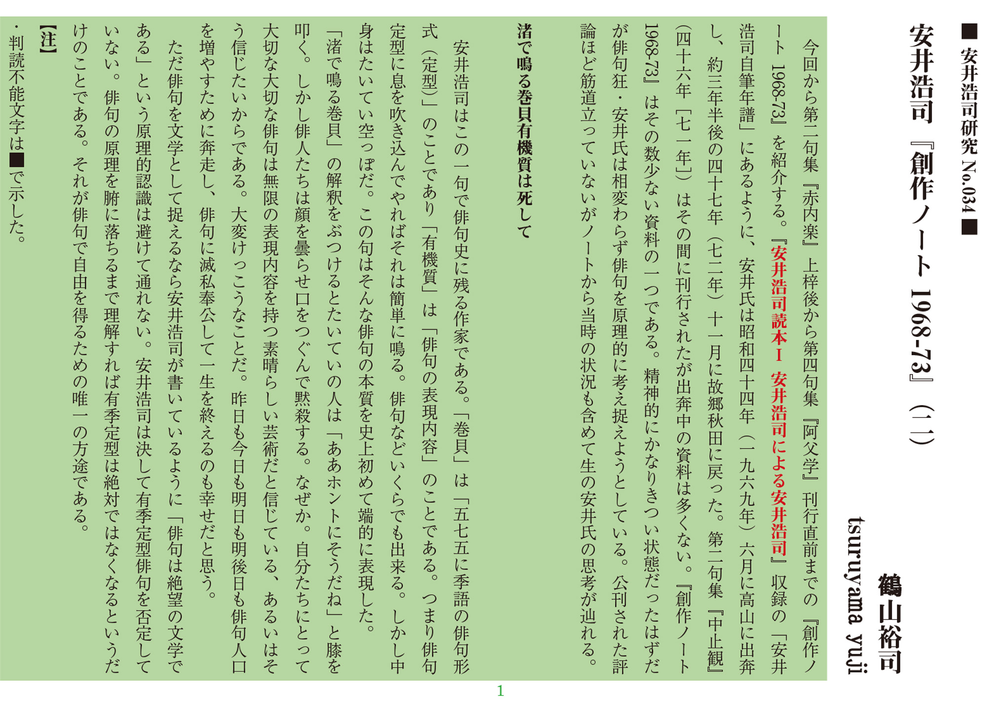 ■鶴山裕司さんのコンテンツ■ 連作詩『聖遠耳 日日新』 連載詩論『現代詩人論』 連載『安井浩司研究』 連載評論『高柳重信とその時代』 連載エッセイ『言葉と骨董』 連載時評『美術展時評』 句誌時評 歌誌時評 ■ 金魚屋 BOOK SHOP ■ ■ 金魚屋 BOOK Café ■ 鶴山裕司 安井浩司研究 No.034 安井浩司『創作ノート 1968-73』(二) was last modified: 9月 24th, 2025 by 鶴山裕司 関連記事 鶴山裕司 安井... 鶴山裕司 安井... 鶴山裕司 安井... 鶴山裕司 安井... 鶴山裕司 安井... 鶴山裕司 安井... 鶴山裕司 安井... 鶴山裕司 安井... 鶴山裕司 安井... 鶴山裕司 安井...